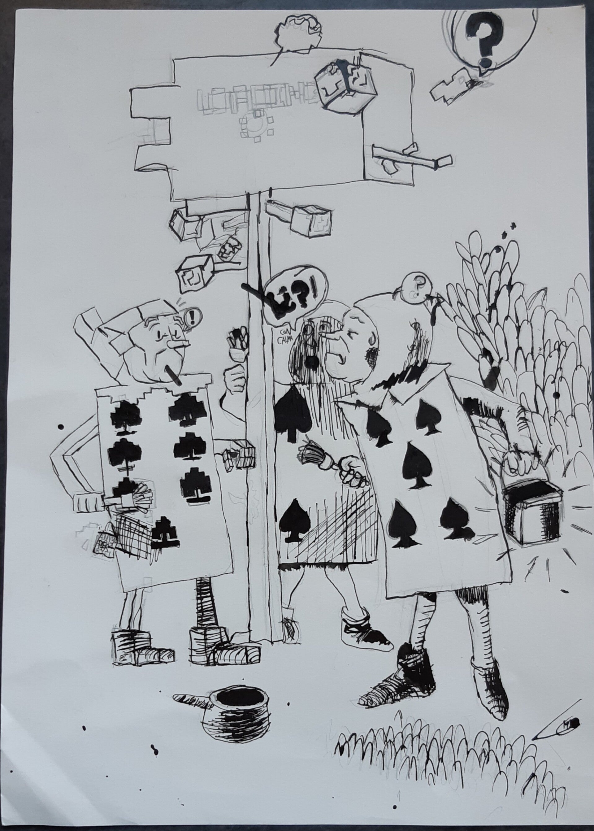 Dibujo con tinta china de Alicia en el país de las maravillas